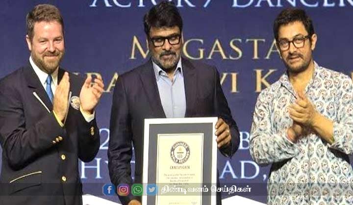 நடிகர் சிரஞ்சீவி கடந்த 45 ஆண்டுகளில் 156 படங்களில், 537 பாடல்களில், 24 ஆயிரத்திற்கும் மேற்பட்ட நடன அசைவுகளை நிகழ்த்தியுள்ளார். இதனை கௌரவிக்கும் விதமாக கின்னஸ் உலக சாதனை புத்தகத்தில் நடிகர் சிரஞ்சீவியின் பெயர் இடம் பெற்றுள்ளது.