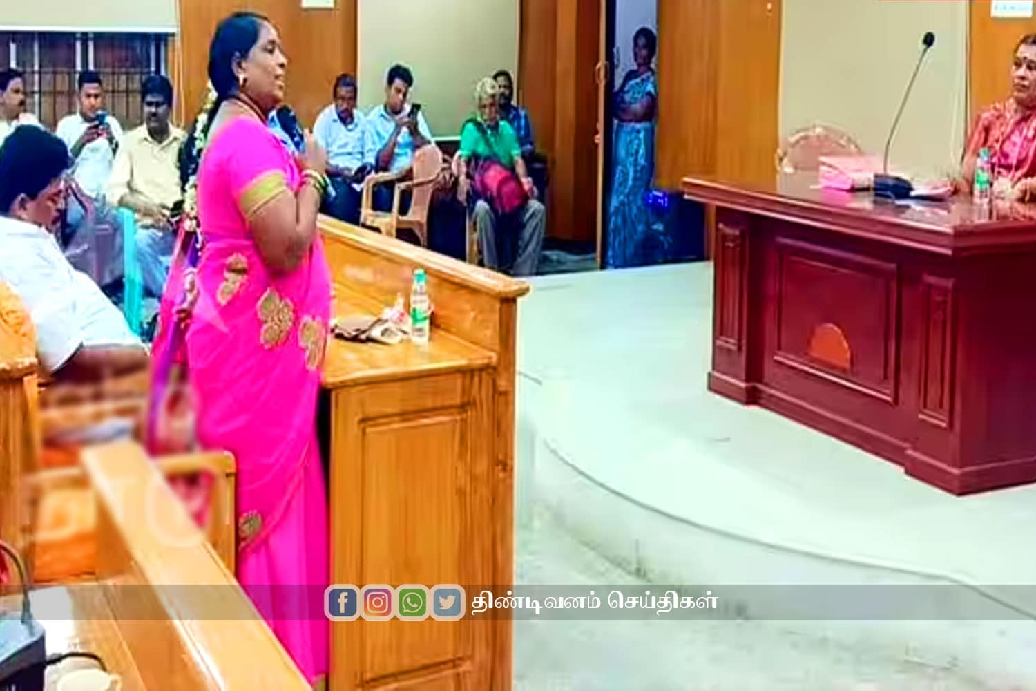 நான் இதுகுறித்து நகர மன்ற தலைவர் இடத்திலும் நகராட்சி ஆணையரிடத்திலும் நகர மன்ற கூட்டத்திலும் பலமுறை கோரிக்கை வைத்தேன். நான் ஒரு தாழ்த்தப்பட்ட சமூகத்தை சார்ந்த பெண் என்பதால் நகரமன்ற தலைவர் இருக்கைக்கு அருகில் நகர மன்றத் துணைத் தலைவராகிய எனக்கு இருக்கை வசதி ஏற்படுத்தி தர மறுக்கிறார்கள். தமிழகத்தில் உள்ள அனைத்து நகராட்சியிலும் நகர மன்ற தலைவர் இருக்கைக்கு அருகில் நகர மன்ற துணைத் தலைவர் அமர்ந்து நகர மன்ற கூட்டத்தை வழி நடத்துகிறார்கள். ஆனால் திண்டிவனம் நகர மன்ற கூட்டத்தில் மேற்கண்டவாறு சாதிய தீண்டாமையால் தொடர்ந்து ஒடுக்கு முறைக்கு ஆளாகிக் கொண்டு உள்ளேன்.