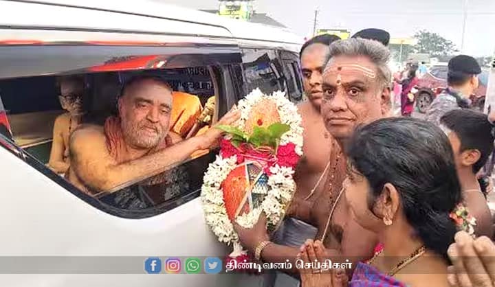 திருவண்ணாமலையில் நடைபெற உள்ள கும்பாபிஷேக விழாவில் பங்கேற்பதற்காக காஞ்சி மடாதிபதி ஸ்ரீ சங்கர விஜயேந்திர சரஸ்வதி சுவாமிகள் நேற்று மாலை திண்டிவனம் வழியாகப் பயணித்தார். மாலை 6.30 மணியளவில் திண்டிவனம் வந்த அவருக்கு, பூரண கும்ப மரியாதையுடன் சிறப்பு வரவேற்பு அளிக்கப்பட்டது.