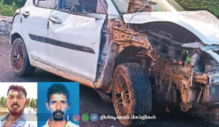 திண்டிவனம் அருகே சென்னை-திருச்சி நெடுஞ்சாலையில் நள்ளிரவில் பைக் மீது கார் மோதிய விபத்தில் ஓட்டல் உரிமையாளர், பெட்டிக்கடை வியாபாரி ஆகியோர் பலியானார்கள். மேலும் சாலையை கடந்தவரும் இதே கார் மோதி இறந்தார். விழுப்புரம் மாவட்டம் திண்டிவனம் அருகே பேரணி கிராமத்தை சேர்ந்தவர்கள் பூபாலன் (45), இவர் அதே கிராமத்தில் பங்க் கடை நடத்தி வந்தார். இதே பகுதியில் இட்லி கடை (ஓட்டல்) நடத்தி வந்தவர் ஐயப்பன் (35). நண்பர்களான இருவரும் புரட்டாசி சனிக்கிழமை தினமான நேற்று திருப்பதி கோயிலுக்கு பேருந்தில் சென்று தரிசனம் செய்தனர். பின்னர் இருவரும் பேருந்தில் ஊர் திரும்பினர். நள்ளிரவு 12 மணி அளவில் கூட்டேரிப்பட்டில் இறங்கி அங்கு நிறுத்தி வைத்திருந்த பைக்கை எடுத்துக்கொண்டு பேரணி நோக்கி புறப்பட்டனர்.